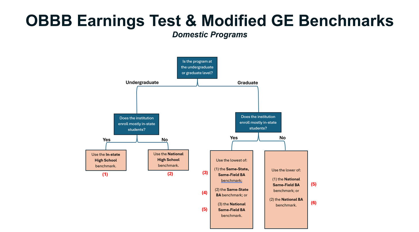 What is being used is a different metric called the Earnings Premium Test. This was always coming, but the OBBBA and Biden Administration differed a bit on the inputs: high school diploma versus bachelors degree.